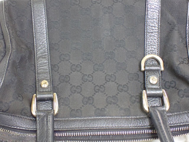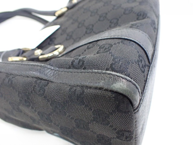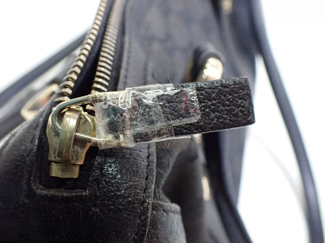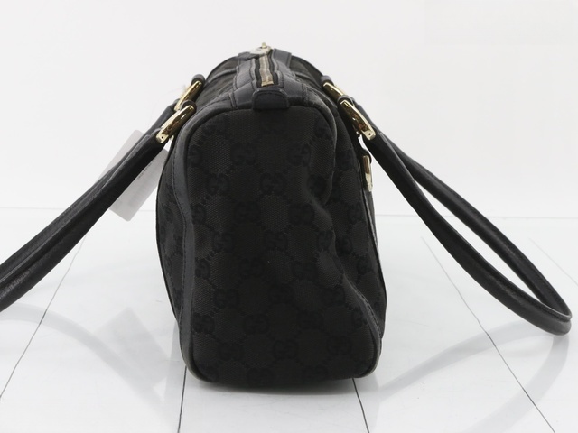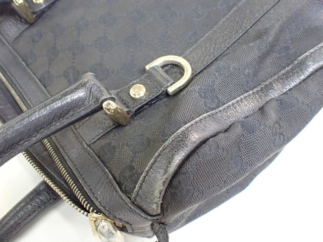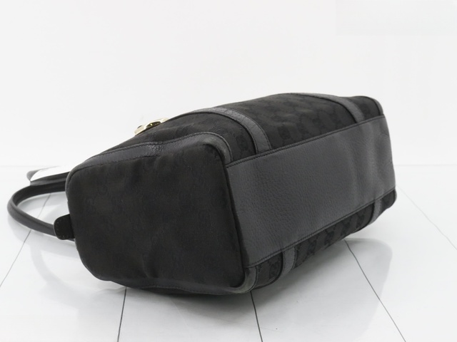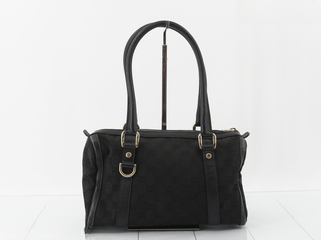 GGキャンバス レザー ハンドバッグ ブラック