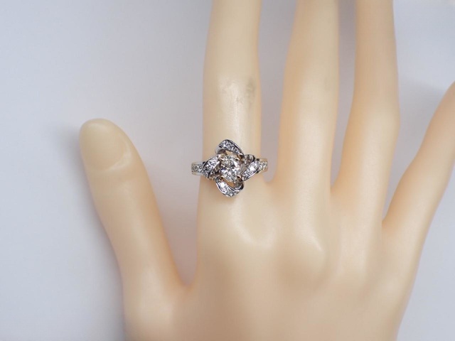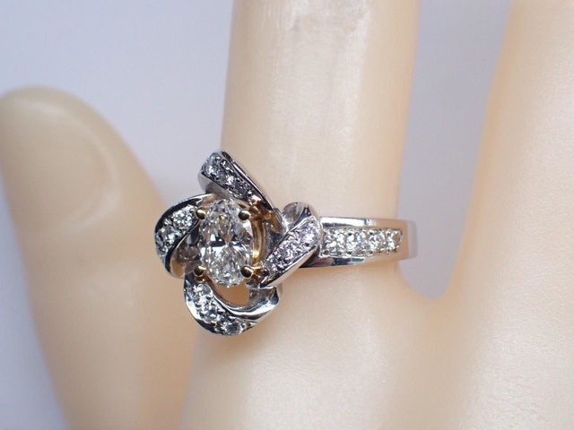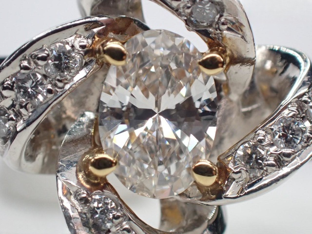 Pt900/K18 D0.573ct MD0.37ct リング 8.6g